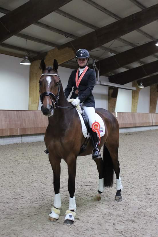 Silke brons op het Nederlands Kampioenschap Geplaatst op 24 maart 2016 door Arjan Blankenvoort — Laat een reactie achter Op 5 maart heeft Silke Kamphuis met haar paard Guus de bronzen medaille gehaald op het Nederlands Kampioenschap dressuur, klasse L1. Zij kreeg een totaal score van 70,22% van de jury. .